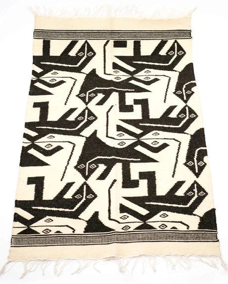 "Iguanas" Gran tapiz o alfombra en lana cruda y negra